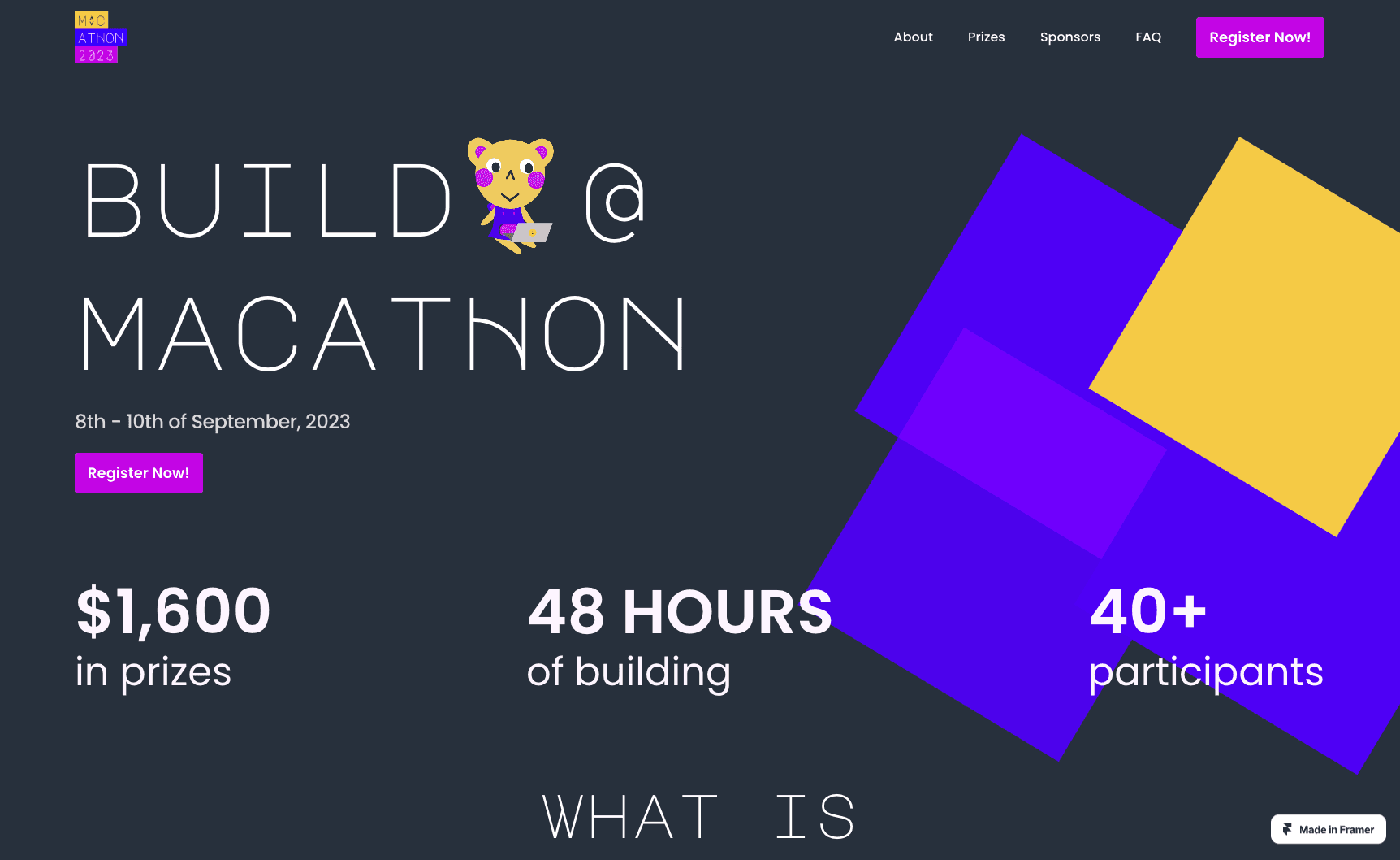 A landing page for the club's yearly flagship hackathon
